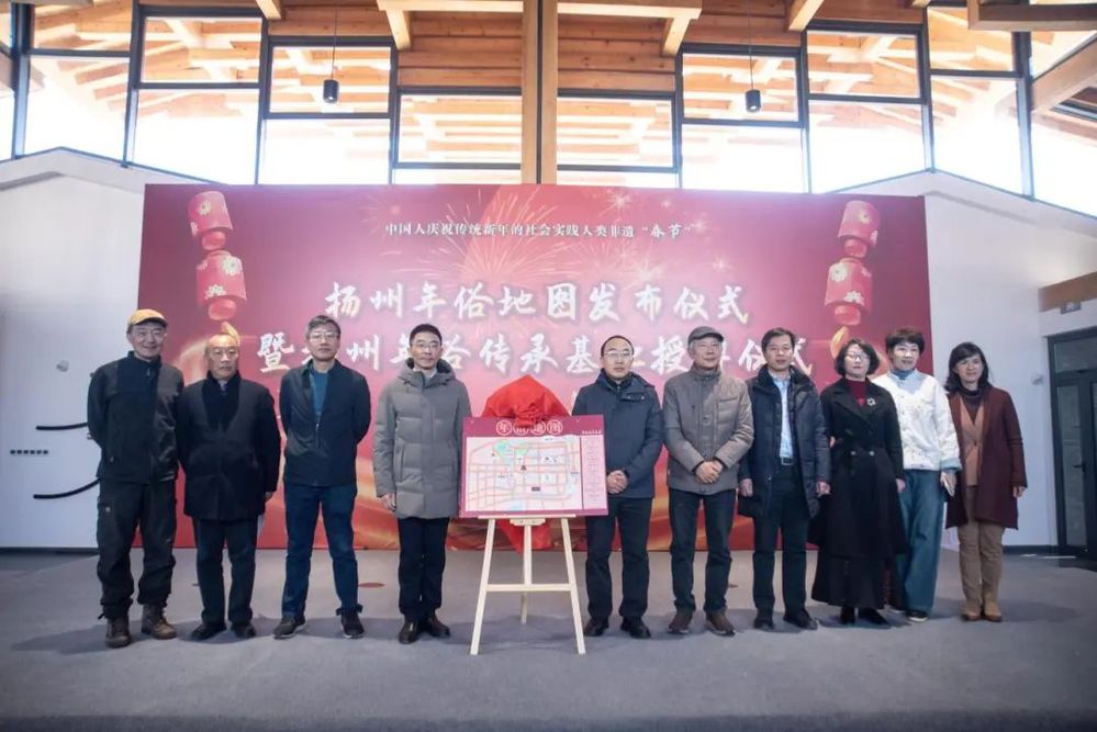 2025年1月10日上午,由揚(yáng)州年俗保護(hù)單位揚(yáng)州文藝家志愿者協(xié)會(huì)精心策劃的揚(yáng)州年俗地圖發(fā)布儀式暨揚(yáng)州年俗傳承基地授牌活動(dòng)在小秦淮劇場(chǎng)熱烈開(kāi)啟,為即將到來(lái)的新春佳節(jié)奏響了激昂序曲,也為揚(yáng)州非物質(zhì)文化遺產(chǎn)傳承與發(fā)展注入了新的活力。揚(yáng)州市文聯(lián)黨組書(shū)記、文聯(lián)主席黃振宇、揚(yáng)州城控集團(tuán)黨委副書(shū)記徐飛、揚(yáng)州市委宣傳部原常務(wù)副部長(zhǎng)李廣春、著名文化學(xué)者顧風(fēng)等嘉賓出席并授牌。