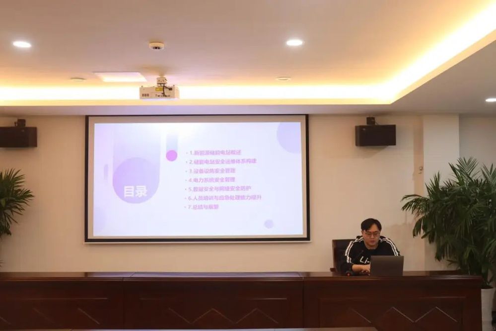 公司員工圍繞“新能源儲能電站運維管理”主題,結(jié)合新能源儲能電站發(fā)展現(xiàn)狀及趨勢,從設(shè)備設(shè)施安全管理、電力系統(tǒng)安全管理等方面,講解了新能源儲能電站安全運維要點、電網(wǎng)接入及并網(wǎng)調(diào)度規(guī)范、遠程監(jiān)控平臺安全防護等安全運維知識,為大家展現(xiàn)了一堂生動有趣、內(nèi)容豐富的安全教育課。