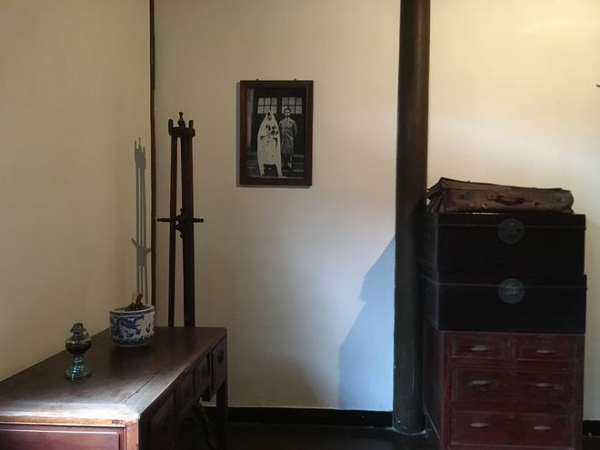 曹起溍故居遵循傳統(tǒng)揚(yáng)州民居倒U形制,南向正廳寬敞明亮,梁柱間高懸曹起溍親筆所書木聯(lián):“憑欄聽鳥語(yǔ),隔院送花香”,筆力遒勁中透著文人的風(fēng)骨。東廂房,曾是曹起溍雙親安享晚年的溫馨居所,承載著一家人的天倫之樂;西廂房的墻壁上,一張銀鹽照片定格了1928年那個(gè)春日午后的美好瞬間,照片中的青年曹起溍身著西服,風(fēng)度翩翩,身旁新娘的白紗,圣潔如雪。這幀珍貴的影像,成為了革命者柔情與擔(dān)當(dāng)?shù)挠篮阋娮C,讓我們看到了他在鐵血革命之外的溫情一面。故居陳列館內(nèi),一塊黃銅懷表靜靜地躺在展柜中,時(shí)間永遠(yuǎn)定格在 1931年2月24日,那日是北固江畔最凜冽的寒冬,烈士遺筆“秋風(fēng)颯颯秋雨絲,妖氣一掃而空之”,墨痕與北固山呼嘯的朔風(fēng)共鳴,合奏出一曲蕩氣回腸的革命悲歌。