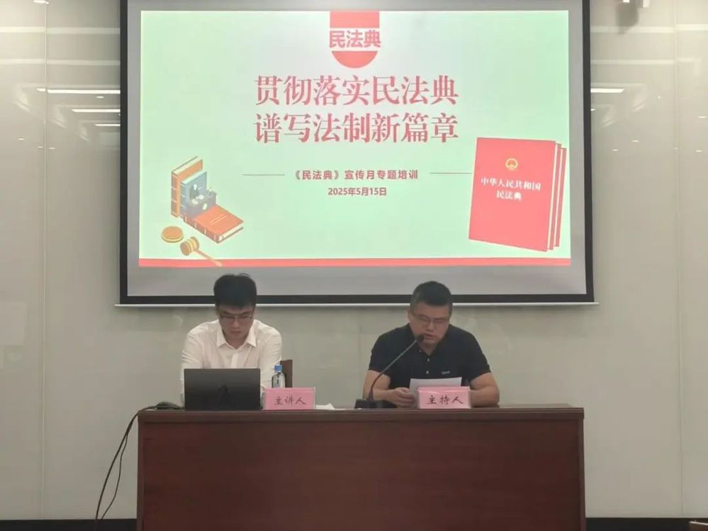 為全面提升員工法治素養(yǎng),強(qiáng)化依法履職能力,5月15日上午,資產(chǎn)公司舉辦了《民法典》宣傳月專題培訓(xùn)活動(dòng)。公司領(lǐng)導(dǎo)班子成員、各處室及子公司負(fù)責(zé)人、員工代表共同參加。