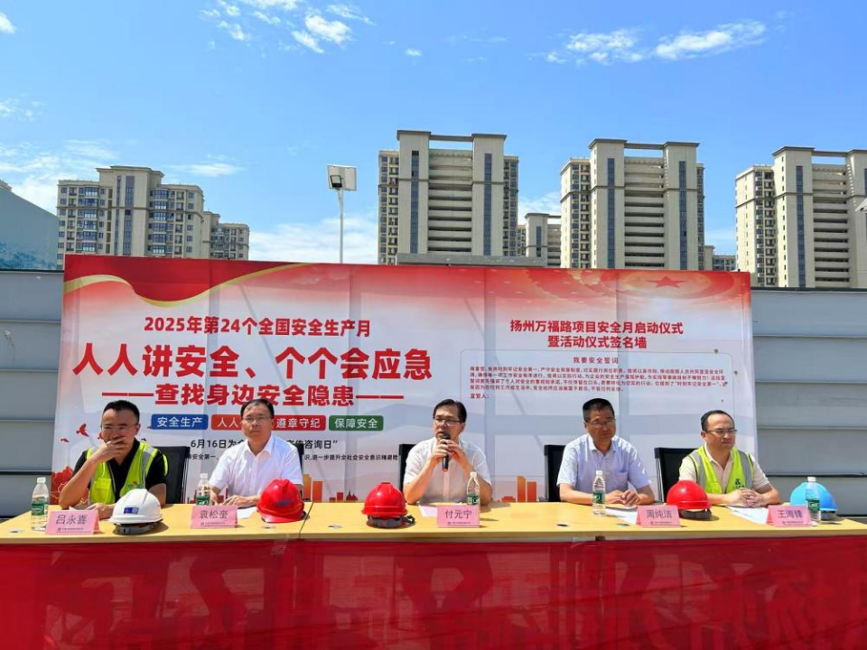 為深入貫徹落實安全生產(chǎn)責任制,扎實推進安全生產(chǎn)工作,6月5日上午,上善公司在萬福快速路東延建設(shè)工程現(xiàn)場舉行2025年“安全生產(chǎn)月”啟動儀式。公司領(lǐng)導(dǎo)班子、各方參建管理人員及各施工隊組50余人參加活動。