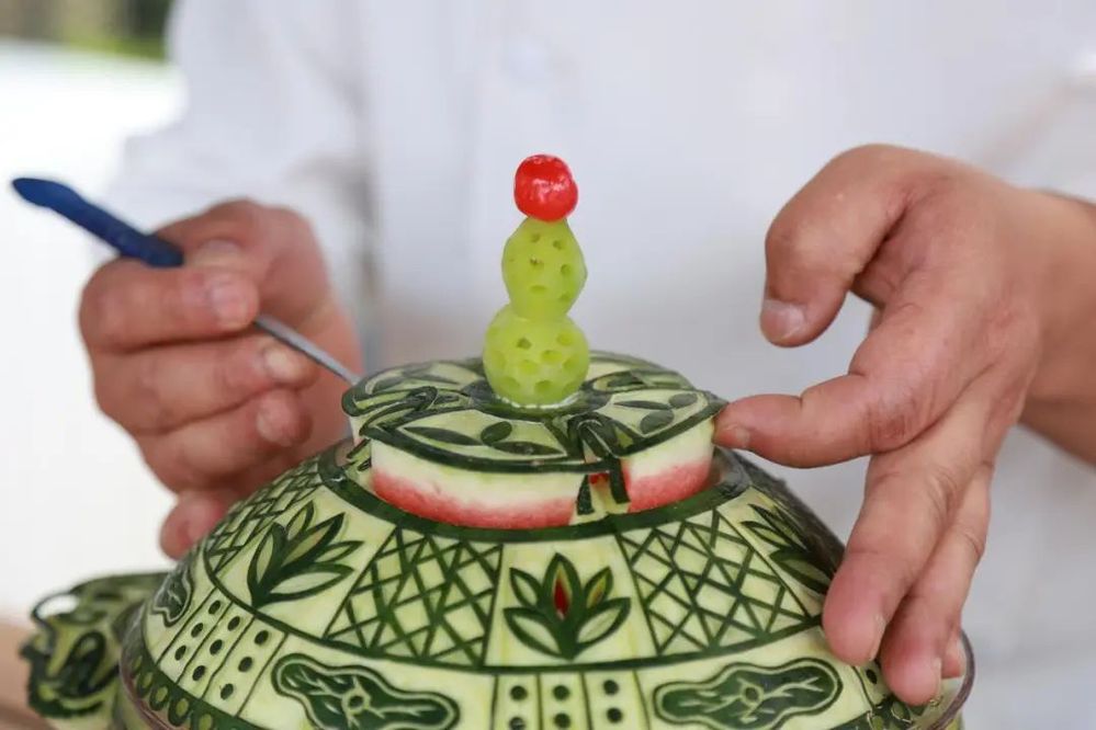活動(dòng)現(xiàn)場(chǎng)精心設(shè)置25個(gè)非遺美食展位,多位非遺傳承大師現(xiàn)場(chǎng)展示精湛廚藝。細(xì)如發(fā)絲的文思豆腐、精雕細(xì)琢的食雕作品、鮮而不膩的獅子頭、粒粒分明的揚(yáng)州炒飯、皮薄餡多的湯包,引得賓客紛紛駐足品鑒。