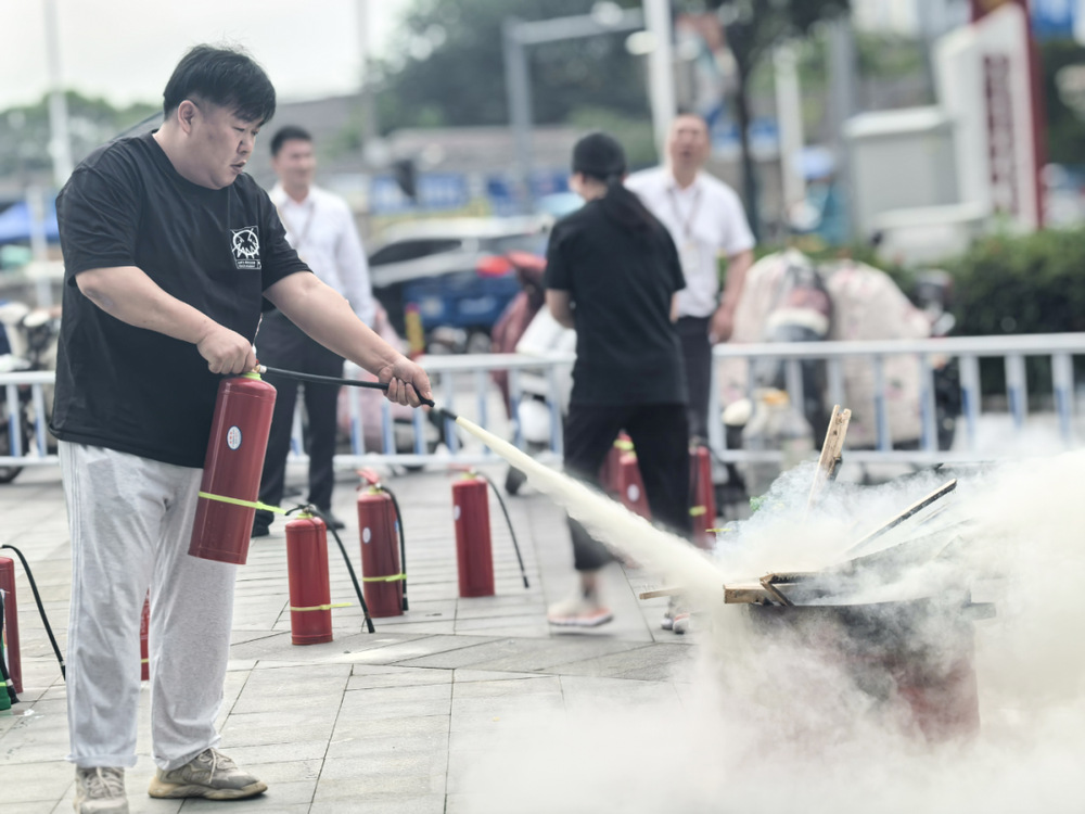 在室外實(shí)操環(huán)節(jié),安保人員組織商場工作人員和商戶代表開展滅火器滅油盆火演練,確保人人掌握技能。同時,商場技術(shù)團(tuán)隊對消防報警系統(tǒng)及自動噴淋系統(tǒng)進(jìn)行聯(lián)動測試,保障設(shè)施可靠運(yùn)行。