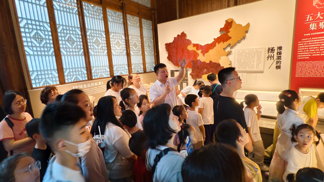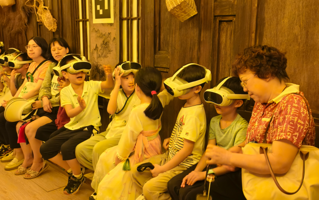 活動(dòng)中,孩子們首先參觀了淮揚(yáng)菜博物館,深入了解淮揚(yáng)菜的歷史文化與精湛技藝。隨后,大家走進(jìn)“唐朝詭事錄”VR劇場(chǎng),戴上VR眼鏡后,孩子們跟隨劇情線索穿梭于大唐盛景之中,在虛實(shí)交融的沉浸式體驗(yàn)里與古人展開“跨時(shí)空對(duì)話”。活動(dòng)尾聲,親子家庭相聚對(duì)影小酒館,共同動(dòng)手制作傳統(tǒng)竹編扇,感受手工技藝蘊(yùn)含的匠心之美。