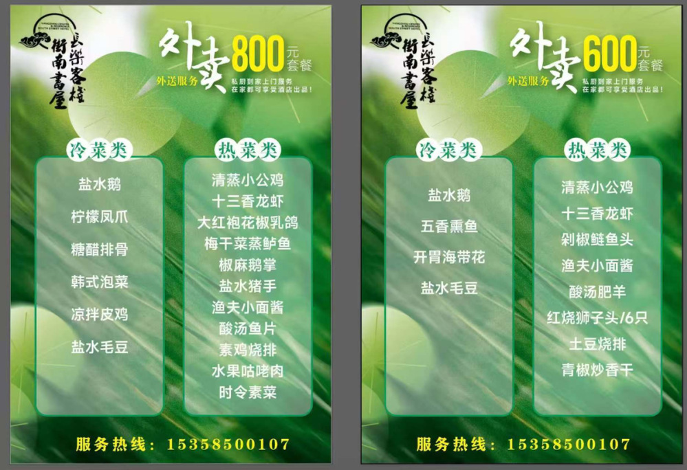 酒店打破傳統(tǒng)用餐場景限制,除了推出門店外賣,還推出了外賣套餐配送和外賣家廚上門的服務(wù)。只需提前撥打預約電話,酒店隨即閃送上門或由廚師攜食材上門現(xiàn)場烹飪,讓您足不出戶體驗舌尖上的美味,坐擁私宴級體驗。