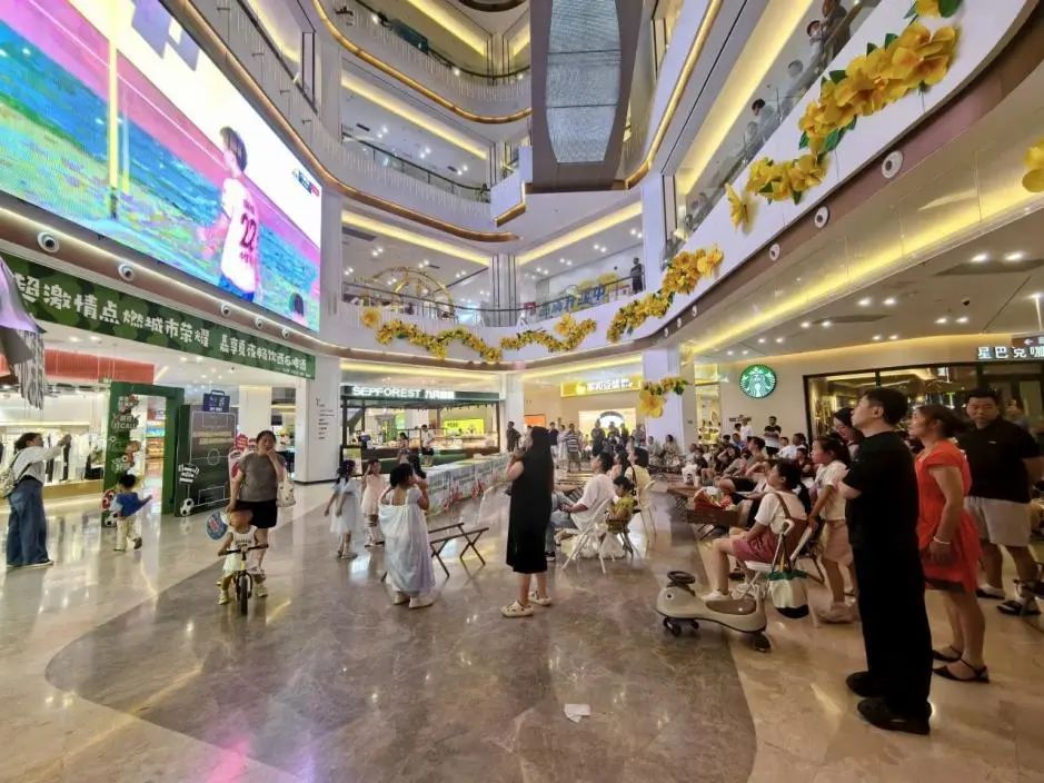 活動當日,嘉都匯中庭大屏實時直播蘇超聯(lián)賽精彩賽事,吸引周邊居民群眾齊聚一堂。大家共同感受著足球運動的熱血和激情,為城市的榮耀奮力加油,熱烈的氛圍徹底點燃了這個夏夜。