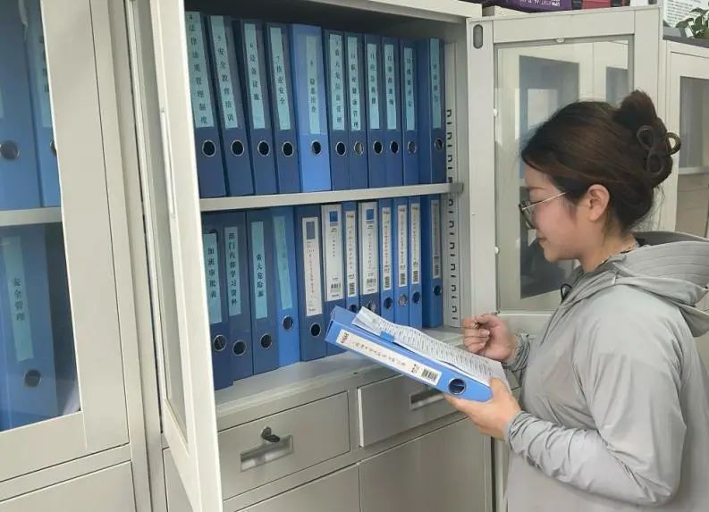 “堅持、細致、專注”是印瑋的代名詞。除了日常的安全巡查工作,回到辦公室,她兢兢業(yè)業(yè)完善安全臺賬、教育培訓資料、組織安全生產(chǎn)活動等,檔案柜里,整齊的安全檔案里飽含著她對工作的負責擔當,詮釋著屬于她的女性力量。