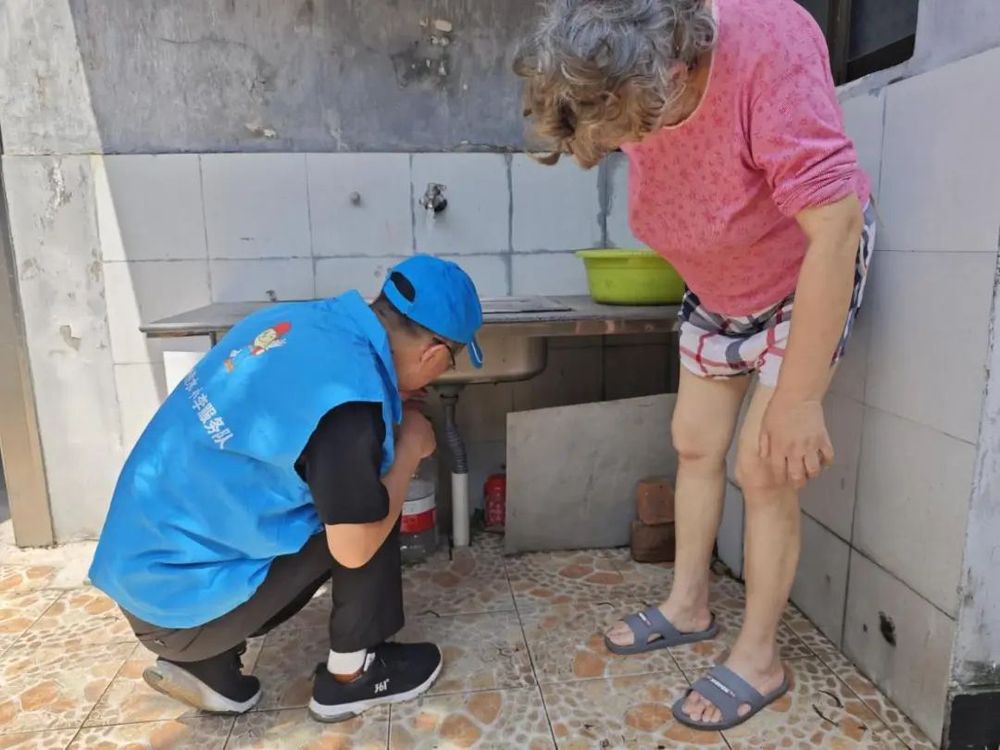 來不及片刻休息,服務隊又趕往東關街浴堂巷朱老太家。朱老太原本與患精神障礙的妹妹相依為命,生活拮據(jù)。然而抵達后,隊員們才得知朱老太已于年初離世,目前僅妹妹獨自居住。龐飛龍默默放下慰問品,仔細檢查了所有用水設施,在確保安全無誤后,向照料老人的哥哥留下聯(lián)系方式,鄭重承諾:用水方面遇到任何問題,請隨時撥打這個電話,我們保證第一時間趕到!樸實的話語中,彰顯著沉甸甸的責任擔當。