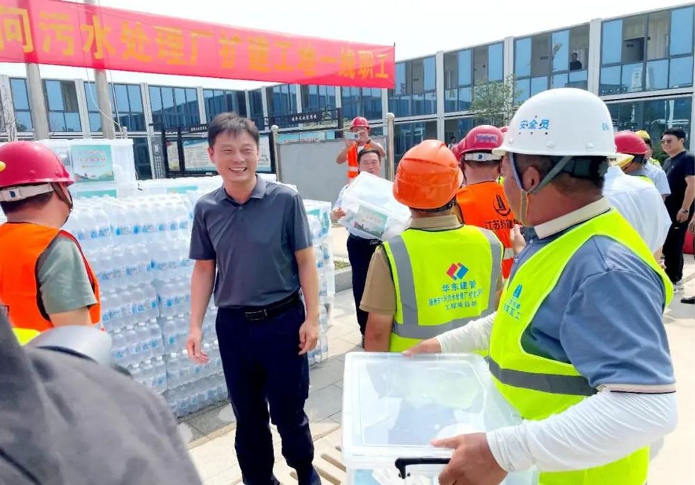 烈日炎炎,高溫來襲。為切實做好防暑降溫工作,保障一線人員身體健康權(quán)益,7月15日下午,揚州市總工會副主席孫凌雷帶隊組成“送清涼”慰問組,來到六圩污水處理廠擴(kuò)建工程現(xiàn)場,為奮戰(zhàn)在高溫一線的工作人員送去防暑物資與深切關(guān)懷,讓“清涼”沁潤心田。