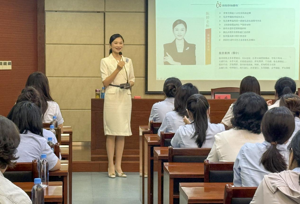 本次培訓(xùn)采用“理論+案例+情景模擬”的沉浸式教學(xué)模式,特邀禮儀中國江蘇揚州總負責(zé)人陳婷老師授課。培訓(xùn)以“服務(wù)溝通技巧與文明用語”為主題,聚焦窗口服務(wù)場景,涵蓋服務(wù)體驗三層重構(gòu)、微服務(wù)溝通精煉、心體驗實戰(zhàn)沙盤等三個部分。理論教學(xué)環(huán)節(jié),陳老師系統(tǒng)講解了服務(wù)過程中文明用語標(biāo)準(zhǔn)、行為舉止要領(lǐng)等,通過實際案例分享共情思維與溝通技巧,幫助參訓(xùn)人員提高服務(wù)對象接待、服務(wù)矛盾化解等實務(wù)能力。情景模擬環(huán)節(jié),參訓(xùn)人員現(xiàn)場實踐服務(wù)用語,通過強化標(biāo)準(zhǔn)化服務(wù)意識和服務(wù)能力來提升用戶體驗。培訓(xùn)現(xiàn)場學(xué)習(xí)氛圍濃厚、互動氣氛熱烈。