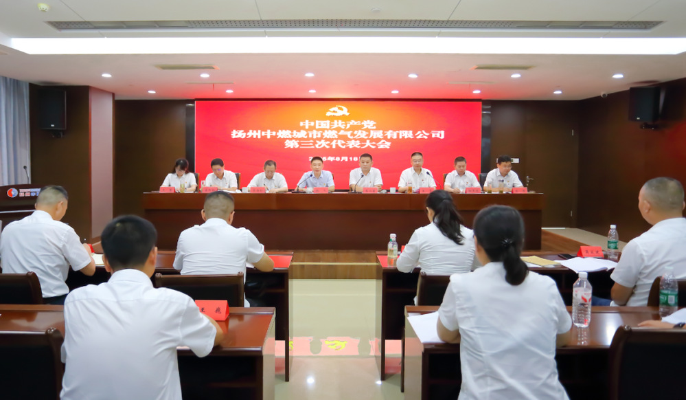 8月18日下午,揚州中燃公司召開第三次黨員代表大會。城控集團(tuán)黨委副書記徐飛到會指導(dǎo)并講話,揚州中燃公司領(lǐng)導(dǎo)班子成員、黨員代表、列席代表參加會議。