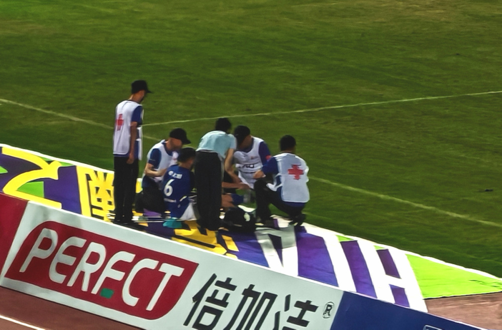 比賽現(xiàn)場(chǎng),隊(duì)員們按照賽事組委會(huì)統(tǒng)一部署,身著統(tǒng)一制服,與市衛(wèi)健委、急救中心等專(zhuān)業(yè)醫(yī)療團(tuán)隊(duì)緊密配合,在球場(chǎng)關(guān)鍵點(diǎn)位待命,一旦裁判示意需要醫(yī)療介入,擔(dān)架組隊(duì)員迅速入場(chǎng)。本場(chǎng)比賽中擔(dān)架組隊(duì)員共上場(chǎng)4次,隊(duì)員們嚴(yán)格執(zhí)行標(biāo)準(zhǔn)操作流程,完成傷情評(píng)估、傷員固定及轉(zhuǎn)運(yùn),最大限度減少球員二次傷害風(fēng)險(xiǎn)。