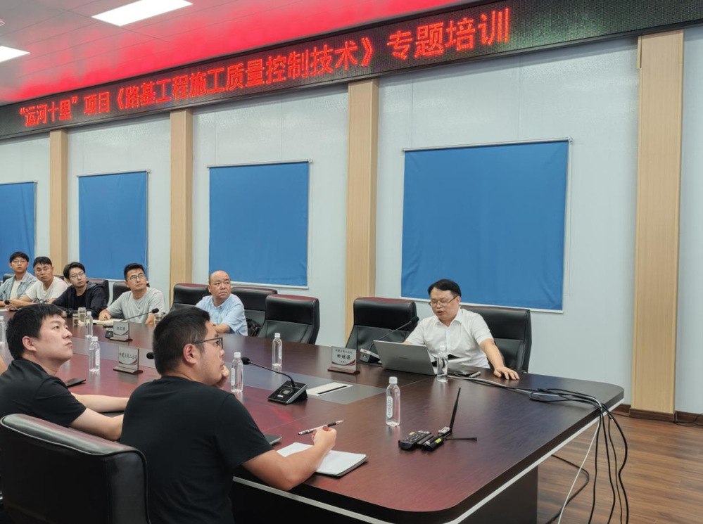 主講人以“路基工程施工質(zhì)量控制技術(shù)”為題,引用路基工程施工真實(shí)案例,從施工準(zhǔn)備、施工流程、施工要點(diǎn),到常見施工問(wèn)題及建議,細(xì)致而全面地講解了改良土路基施工和雙向攪拌樁路基施工的技術(shù)工藝及質(zhì)量控制,培訓(xùn)內(nèi)容兼具技術(shù)性、針對(duì)性和可操作性,為“運(yùn)河十里”項(xiàng)目后續(xù)建設(shè)工作打下堅(jiān)實(shí)基礎(chǔ)。