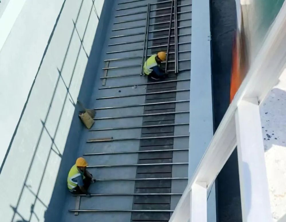 在生物反應(yīng)池作業(yè)面上,正在進行火燒板貼面安裝的黃師傅是眾多堅守者中的一員。黃師傅說“為了搶進度,除了中秋節(jié)下午放了半天假,整個假期我們都在工地上”。工地每天清晨5點半開始運轉(zhuǎn),施工人員到崗后首先參加安全例會和班前教育,明確當日任務(wù)后,便立即投入緊張作業(yè)。這份堅守,不僅體現(xiàn)了建設(shè)者對崗位的盡責(zé),更寄托著對項目早日建成投運的期盼。